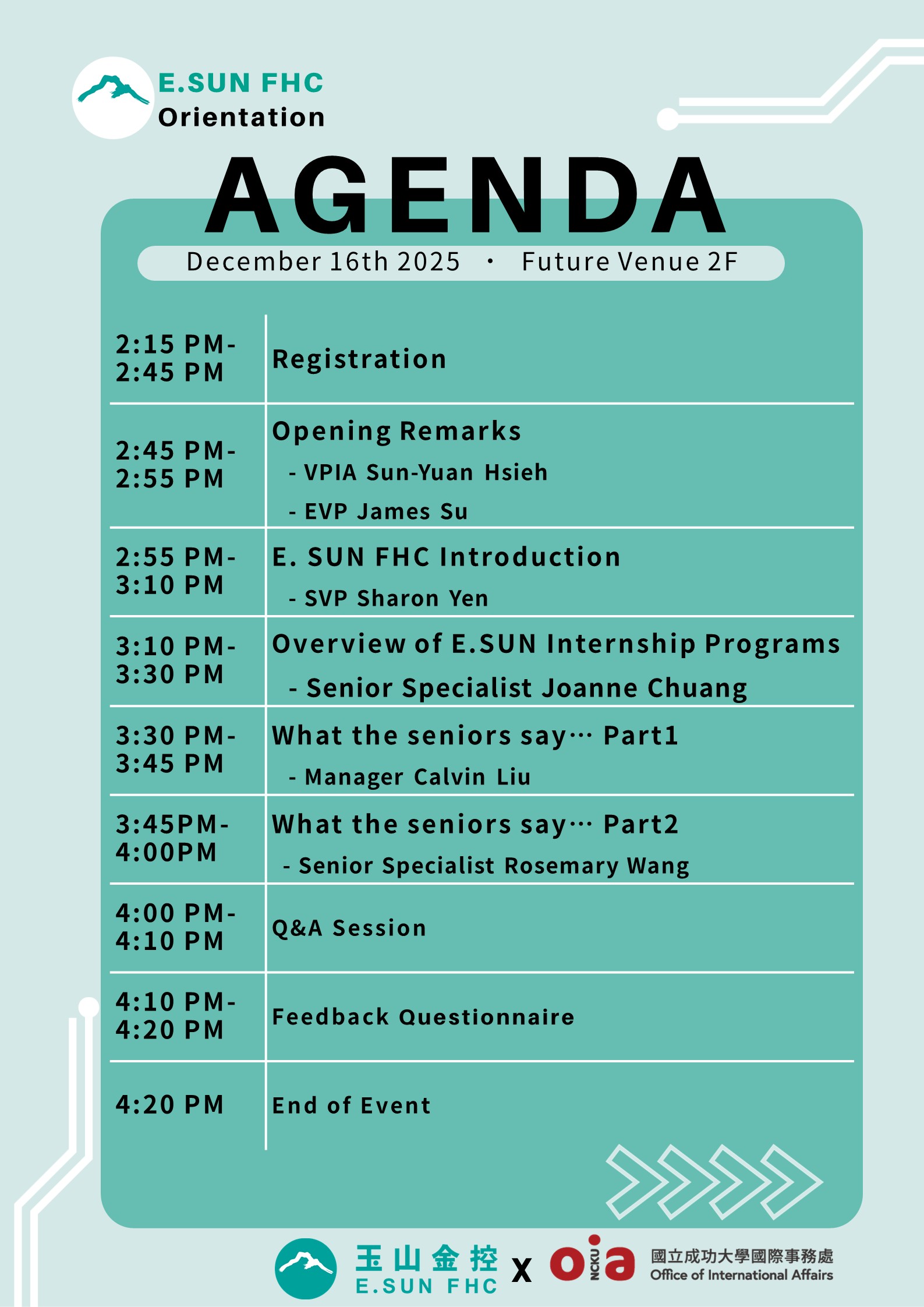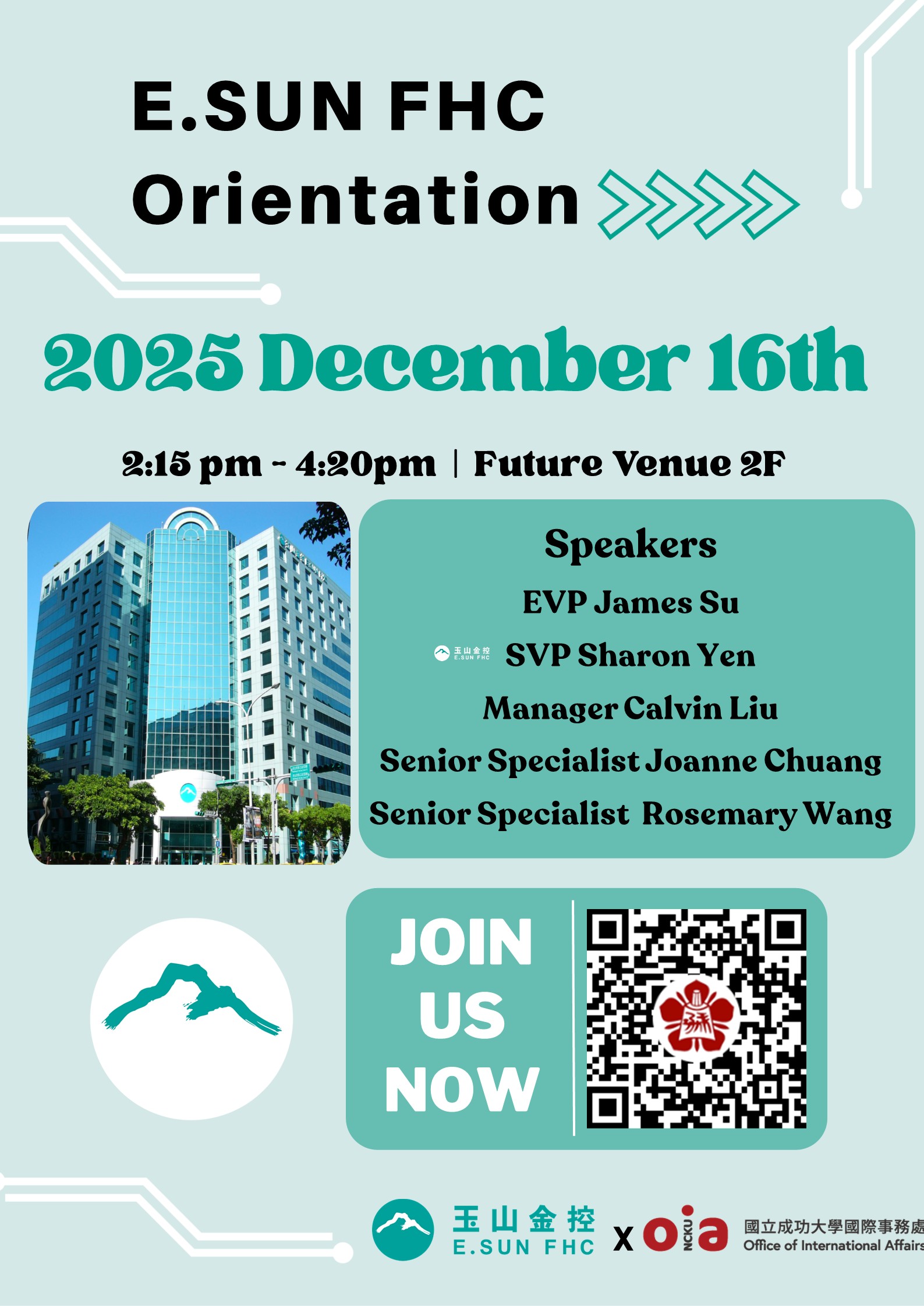 【🌟E.SUN FHC Internship Info Session 】 Want to get a head start in the financial industry and build real-world experience? E.SUN FHC will hold an internship info session on campus, where the E.SUN FHC will introduce the internship content, training resources, and career development opportunities.